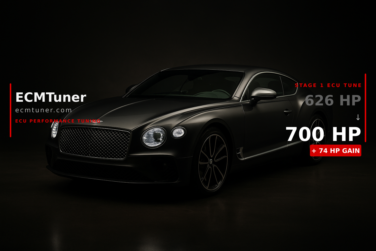 Elevate your 2019 Bentley Continental GT V8 / GTC V8 V8 with a precision ECU tune from ECMTuner, based in Moonachie, NJ — serving the NYC metro area and remote clients nationwide. Our custom calibration delivers real, dyno-proven gains: go from 626 HP / 563 lb-ft stock to a thrilling 716 HP / 644 lb-ft — that's +90 HP and +81 lb-ft of torque.